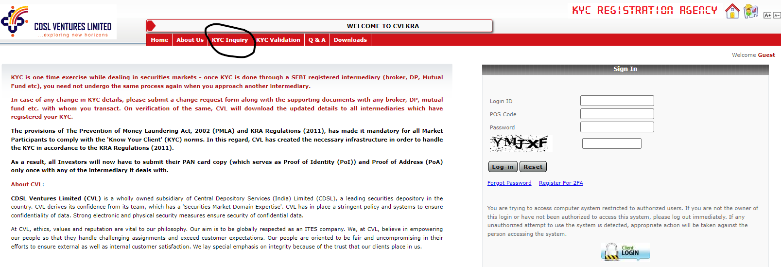 Process to check the Status and Verify KYC details Registered with KYC Registration Agencies (KRA):