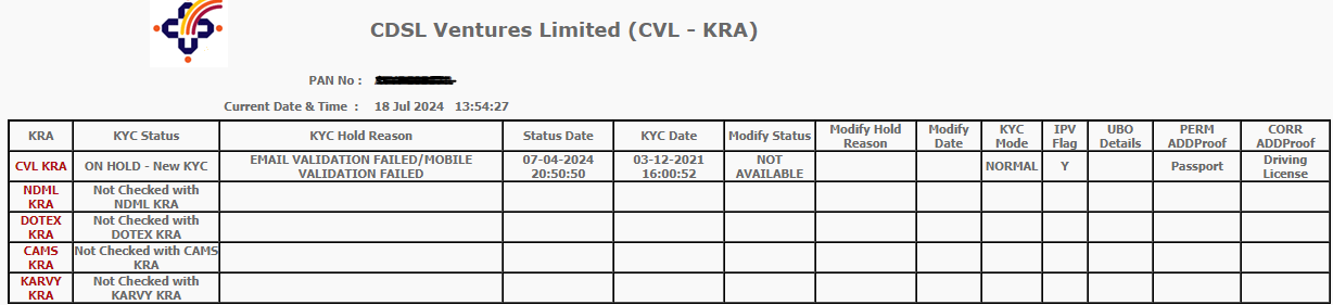If the Details are not verified as per above screenshot, than clients need to verify the same from their KRA agency (in the above screen shot, client KRA is registered with CVL KRA), below are the Links for 5 KRA agencies, click on your respective KRA agency :